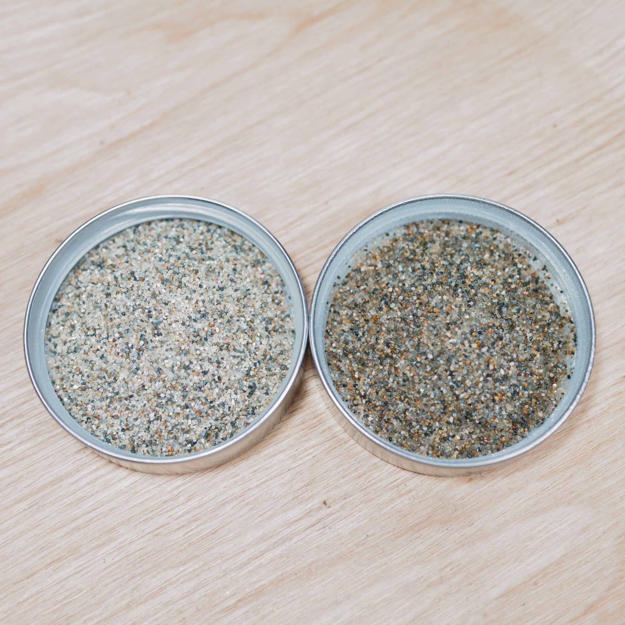 細かい粒の砂で、川辺や渓流、水辺の景色を作るのに適した砂です。