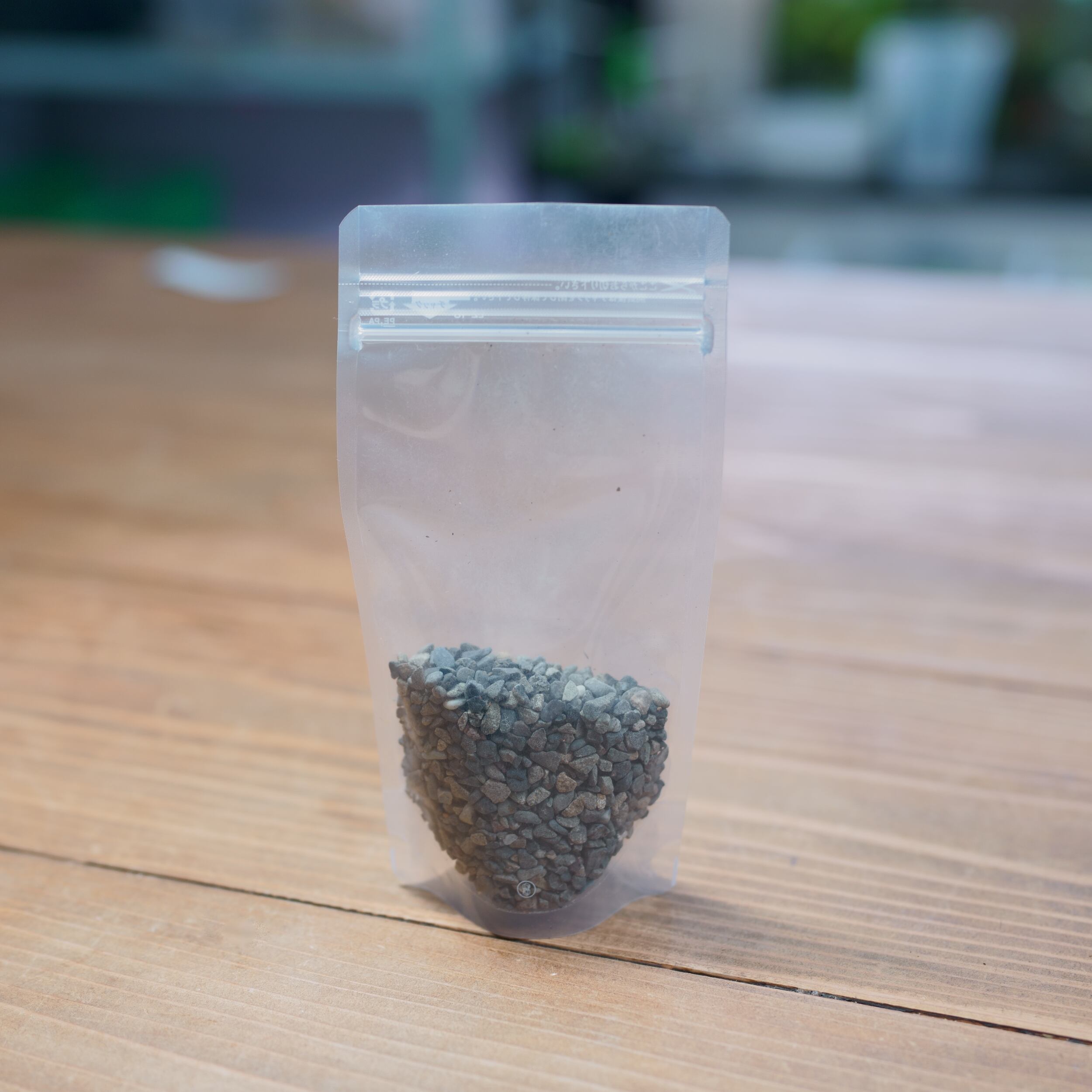 川の砂利、小粒です。青や白、茶色など自然の風合いの色の石が入っています。