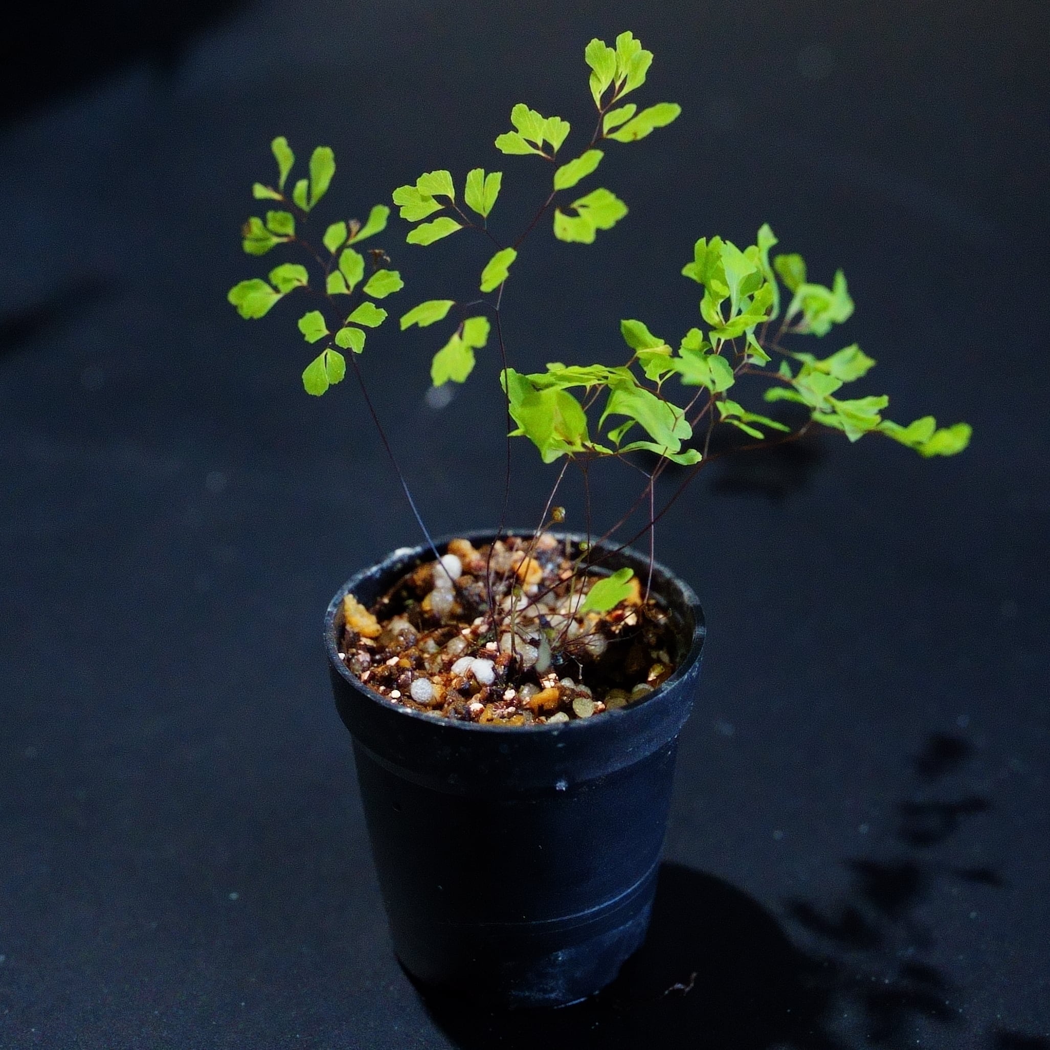 アジアンタムの中で小型の葉の種類のシダです。