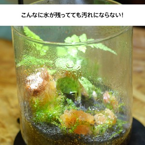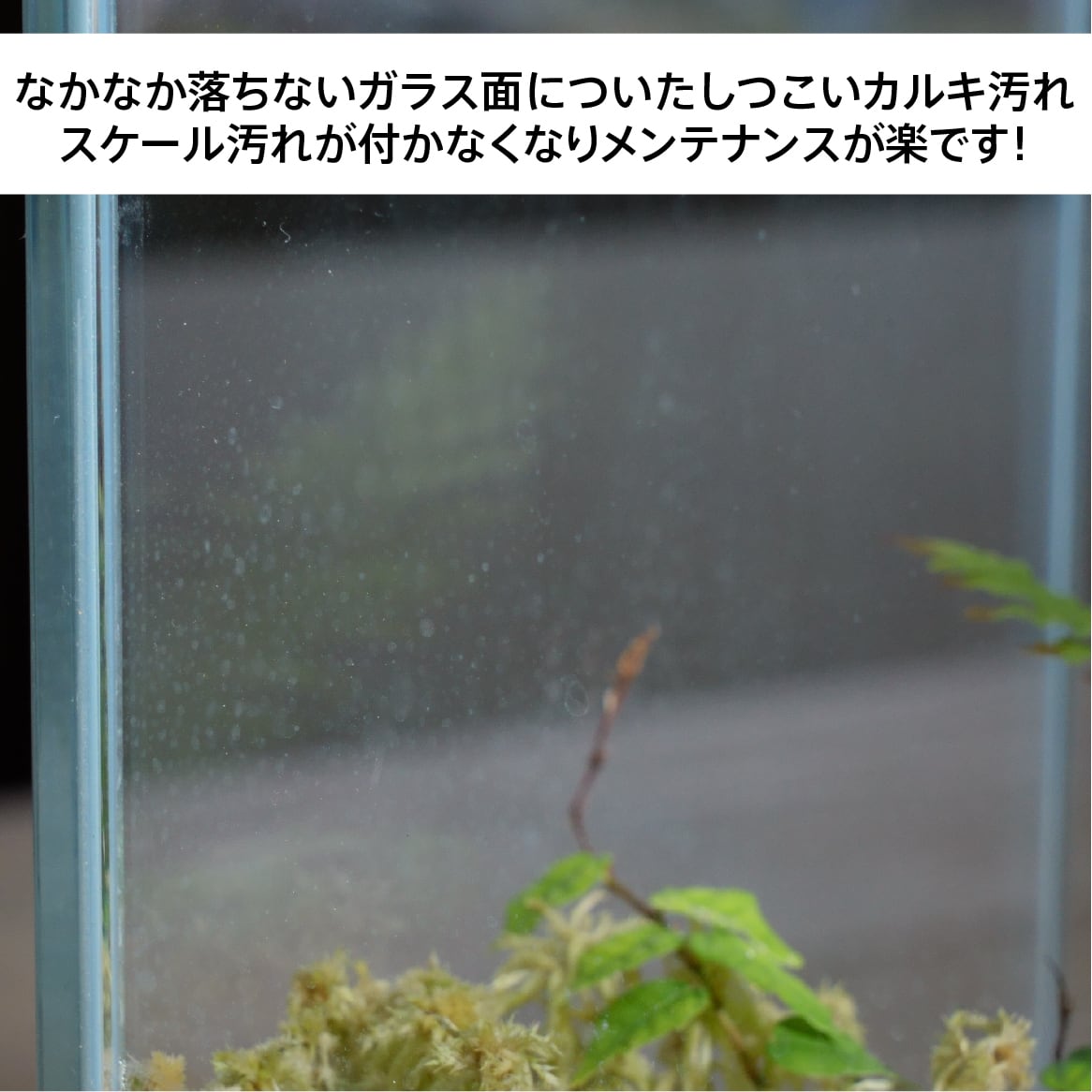 ガラス面のカルキ汚れが付きませんので、水やりの後に容器を拭く手間が省け、テラリウムの管理が格段に楽になります。