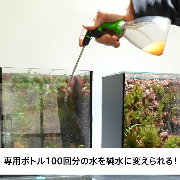 専用の霧吹きが500mlの容量なので、100回分の純水を作ることができます。