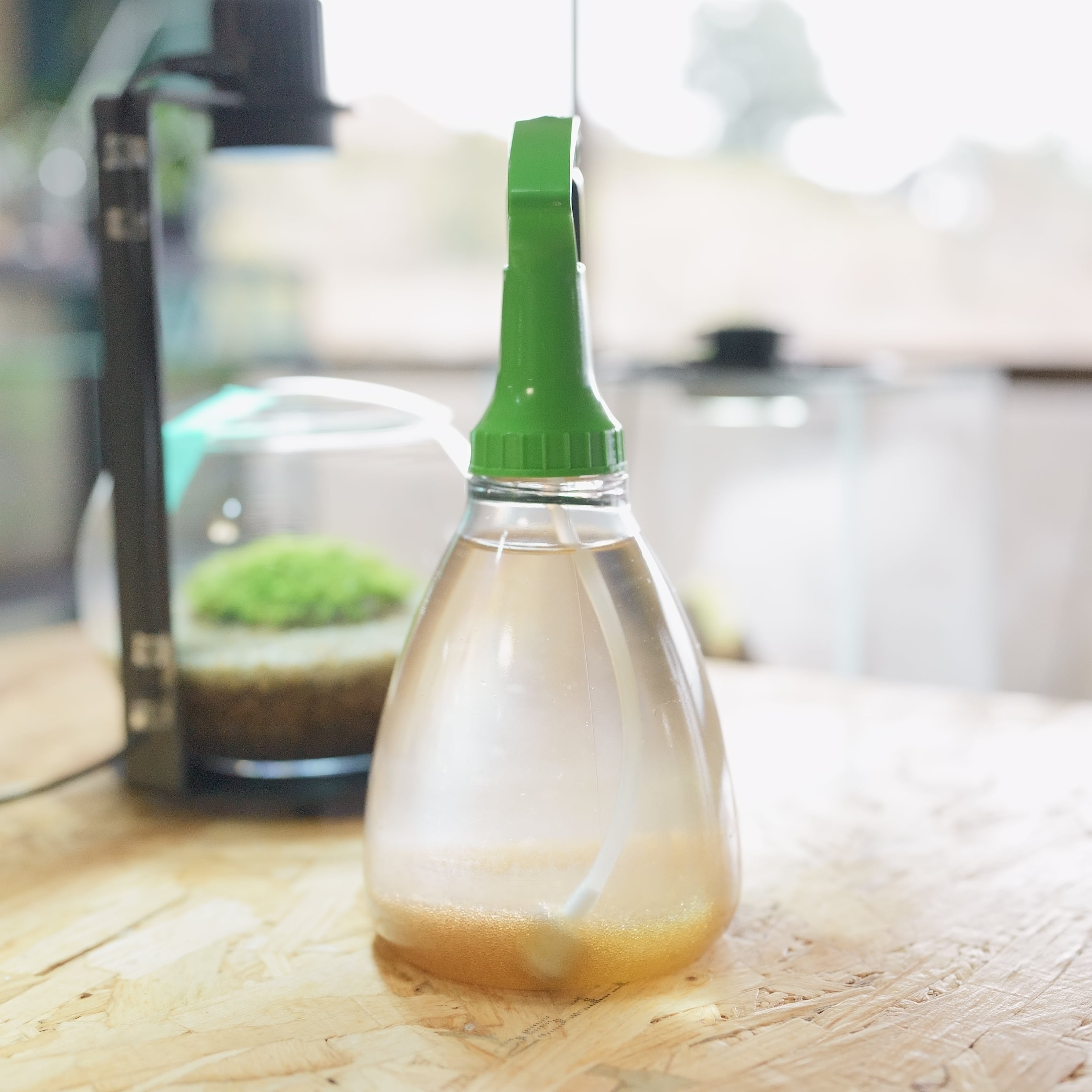 クリアウォーターパウダーは専用の霧吹きでご使用ください。他の霧吹きで使用するとノズルが詰まって霧吹きが使えなくなる等のトラブルになります。