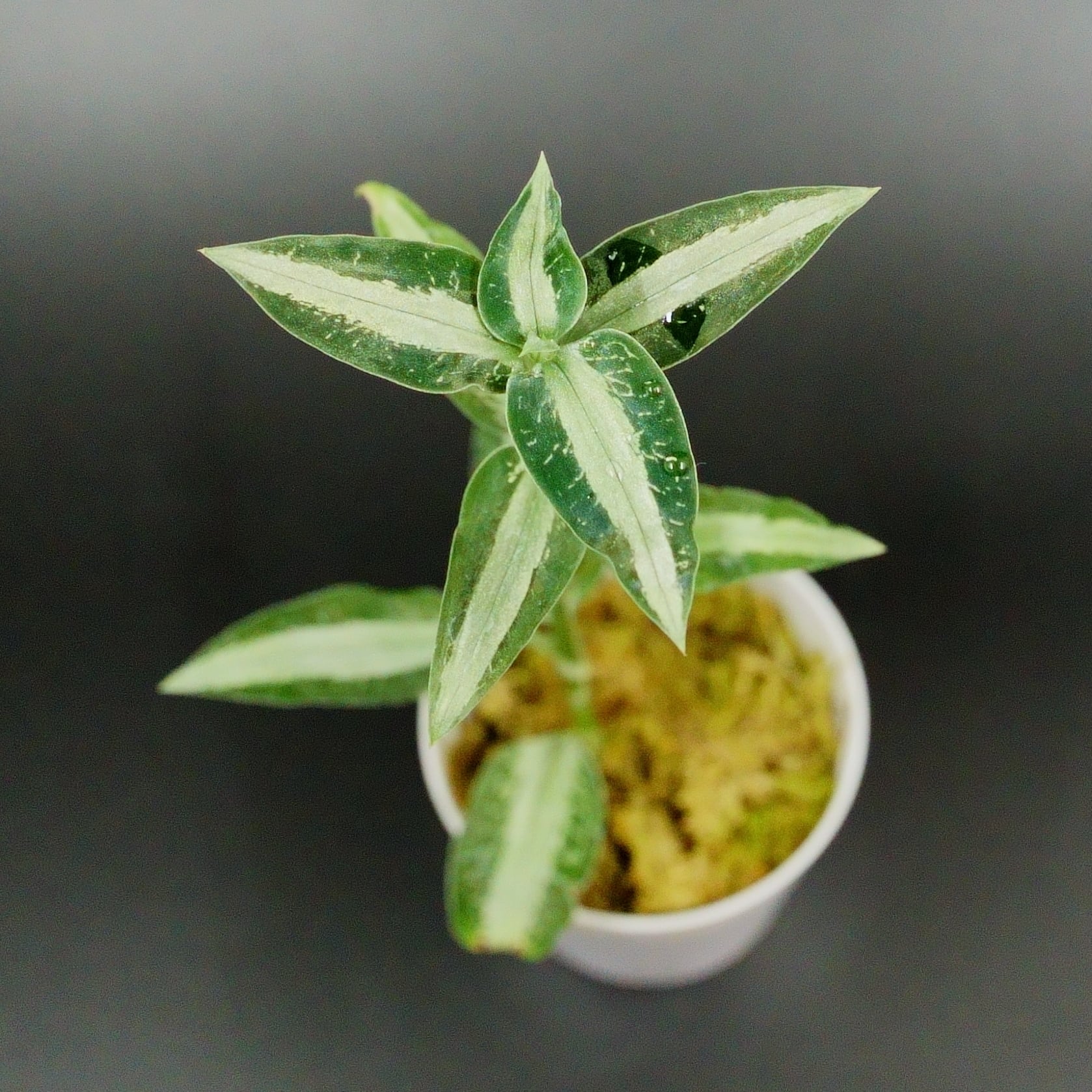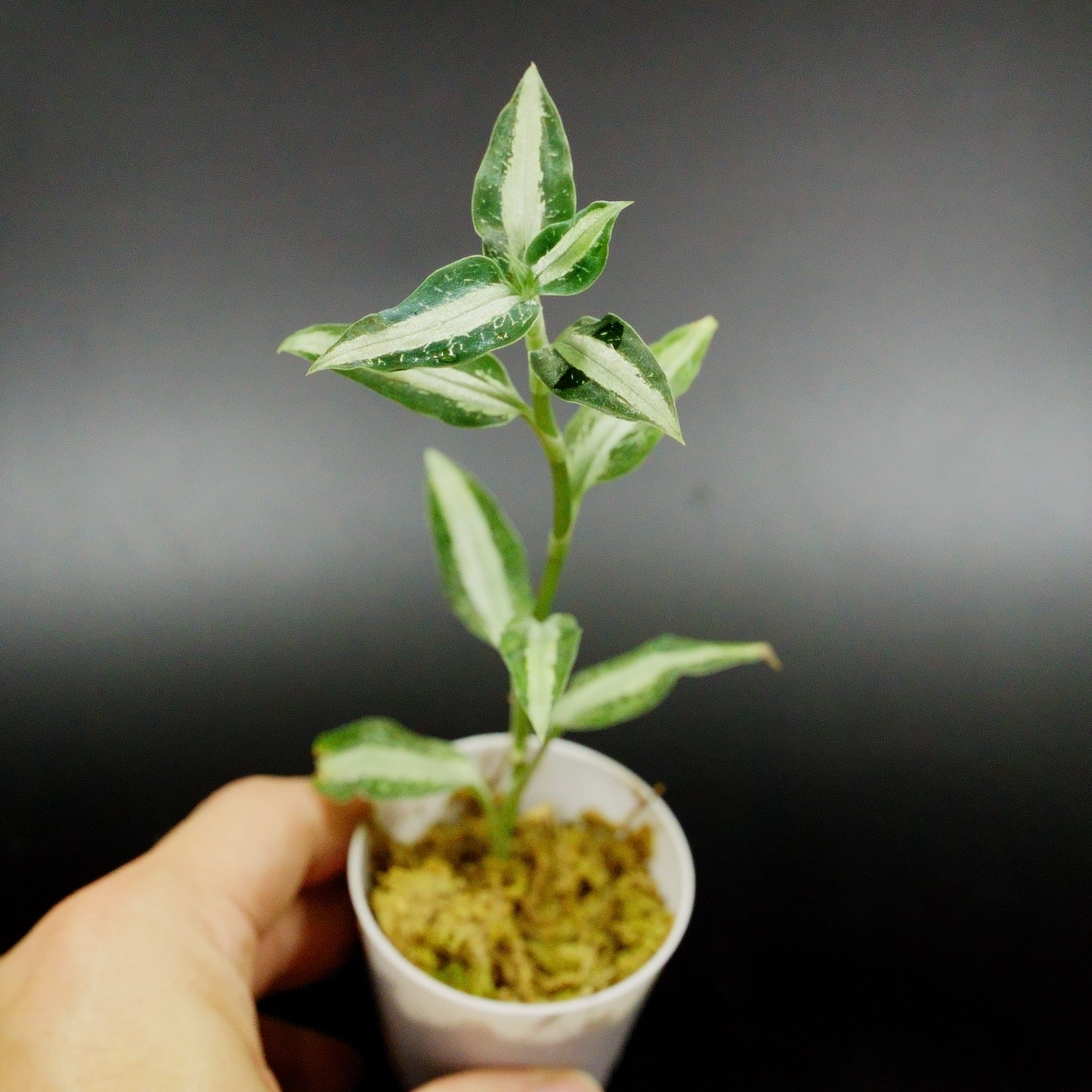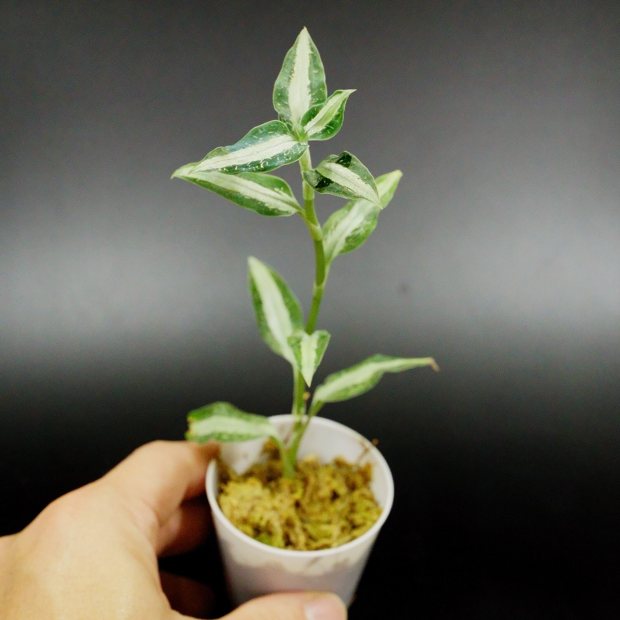 細い葉にシルバーの葉脈が美しい種類です。