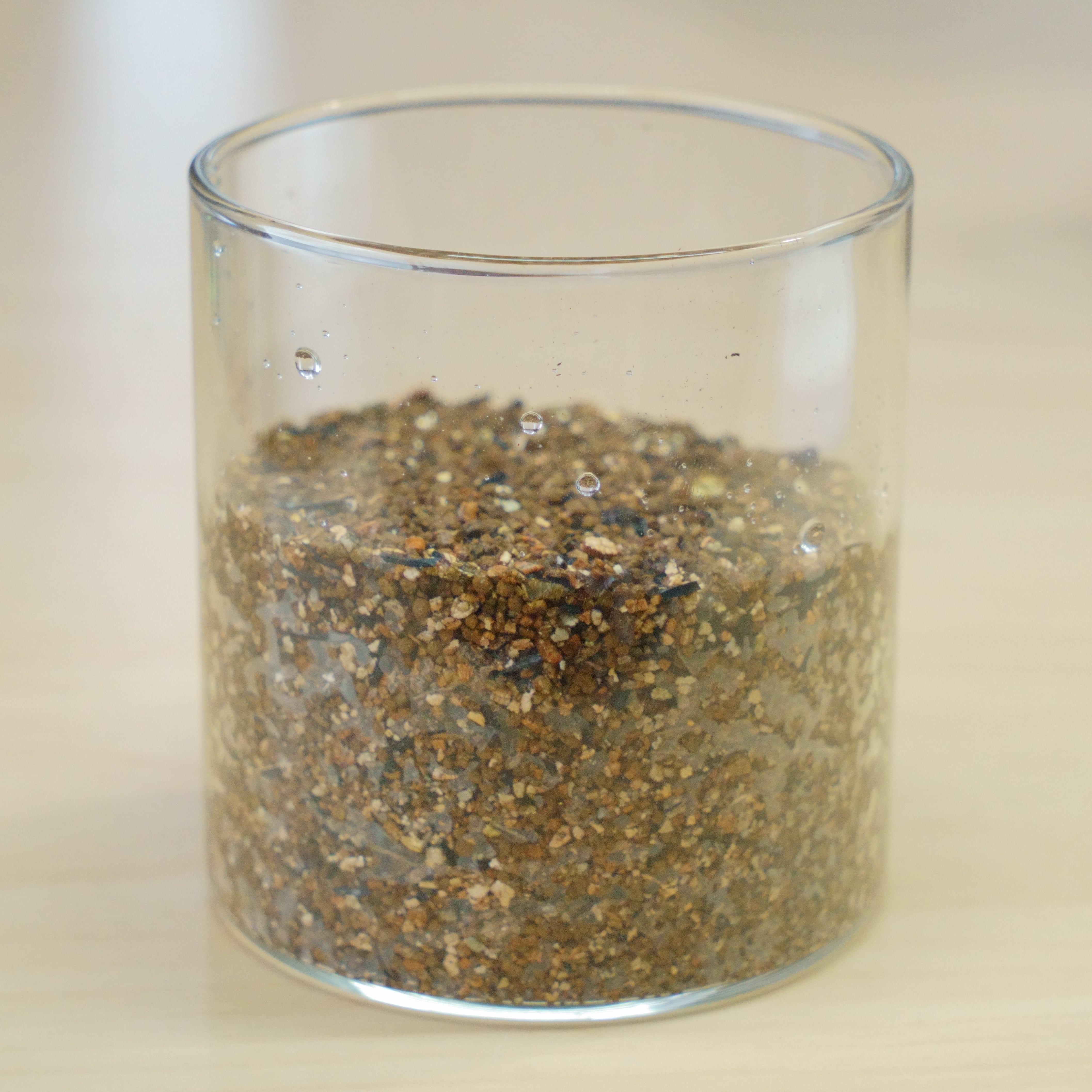 赤玉は焼成してある細粒を使用しブレンド前に洗浄下処理を行い、丁寧に微塵を取り除いています。